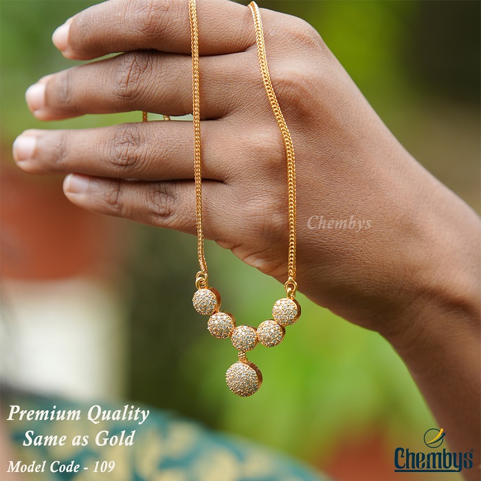Bring elegance and tradition together with the Chembys Premium Forming Gold Plated Semi Ball Design Necklace,